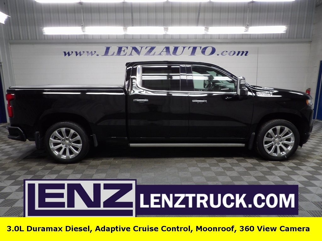 COME DOWN AND TAKE B34195 FOR A TEST DRIVE TODAY 2021 BLACK SILVERADO 1500 CHEVROLET HIGH COUNTRY 4X4 CREW CAB 6.5 FT STANDARD BOX 3.0L I6 DIESEL!! PRICED BELOW KBB FAIR PURCHASE PRICE! CLEAN CARFAX. 22/26 CITY/HIGHWAY MPG!!