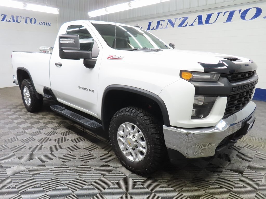 COME DOWN AND TAKE B35218 FOR A TEST DRIVE TODAY 2021 SUMMIT WHITE SILVERADO 3500HD CHEVROLET WORK TRUCK 4X4 REGULAR CAB 8 FT LONG BOX 6.6L DURAMAX V8 TURBODIESEL!! CARFAX ONE-OWNER!!