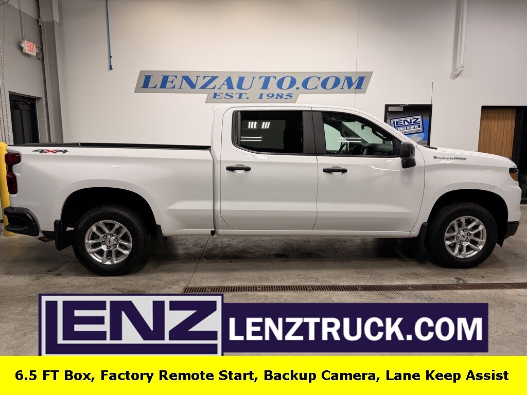 5.3L V8 ECOTEC3, 4X4, 6.5 FOOT BOX, 40/20/40 SPLIT BENCH CLOTH SEATS, PREFERRED EQUIPMENT GROUP 1WT--- WORK TRUCK PACKAGE--- WT CONVENIENCE PACKAGE--- WT VALUE PACKAGE--- TRAILERING PACKAGE--- FOLLOWING DISTANCE INDICATOR, FORWARD COLLISION ALERT, STEERING WHEEL CONTROLS, REAR DEFROST, FACTORY REMOTE START, AUTOMATIC EMERGENCY BRAKING, LANE KEEPING ASSIST, FRONT PEDESTRIAN BRAKING, TOUCHSCREEN CONTROLS, BACKUP CAMERA, KEYLESS ACCESS WITH PUSH BUTTON START, AUTOMATIC HEADLIGHTS, APPLE CARPLAY, ANDROID AUTO, VOICE RECOGNITION, BLUETOOTH HANDS-FREE, AUTOMATIC LOCKING REAR DIFFERENTIAL, SINGLE ZONE CLIMATE CONTROL, AUTO HIGH-BEAM HEADLIGHTS, DELAY-OFF HEADLIGHTS, ELECTRICAL STEERING COLUMN LOCK, FRONT FRAME-MOUNTED BLACK RECOVERY HOOKS, FULLY AUTOMATIC HEADLIGHTS, HEAVY-DUTY AIR FILTER, HITCH GUIDANCE, LOCKING TAILGATE, MANUAL TAILGATE FUNCTION WITH NO EASY RAISE, MANUAL TILT WHEEL STEERING COLUMN, RUBBERIZED-VINYL FLOOR COVERING, SIRIUSXM DELETE, STANDARD SUSPENSION PACKAGE, STANDARD TAILGATE, VARIABLY INTERMITTENT WIPERS, 10 SPEED AUTOMATIC TRANSMISSION, BRIDGESTONE DUELER A/T 265/70R17 TIRES, 17" X 8" ULTRA SILVER PAINTED STEEL WHEELS, 3.23 REAR AXLE RATIO, 3 YEAR OR 36,000 FACTORY BUMPER TO BUMPER WARRANTY, 5 YEAR OR 60,000 FACTORY POWERTRAIN WARRANTY!!
