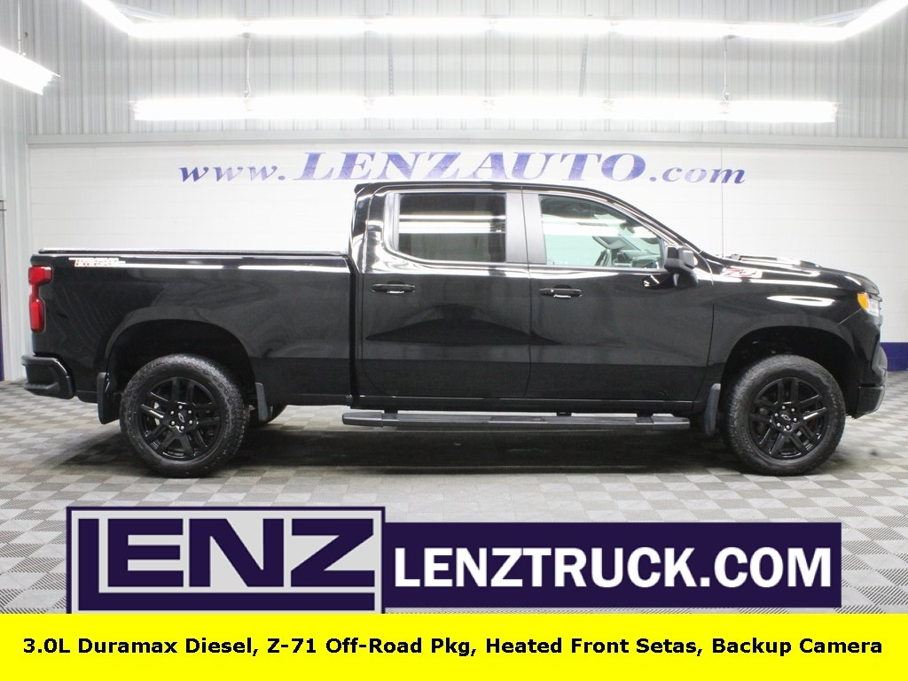 COME DOWN AND TAKE S34298 FOR A TEST DRIVE TODAY 2024 BLACK SILVERADO 1500 CHEVROLET LT TRAIL BOSS 4X4 CREW CAB 6.5 STANDARD BOX 3.0L I6 DIESEL!! CLEAN CARFAX!!