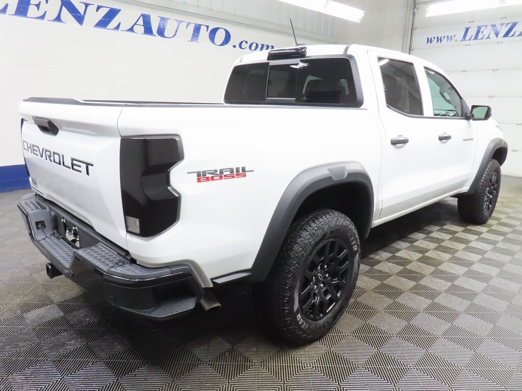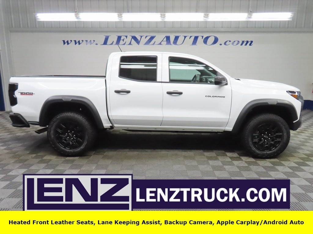 This 2025 Chevrolet Colorado Trail Boss in Summit White is available now at Lenz Truck Center. This 4x4 Crew Cab Trail Boss is powered by the 2.7L I-4 turbocharged engine and has just 4,536 miles, making it a low-mileage, hard-to-find Trail Boss configuration.