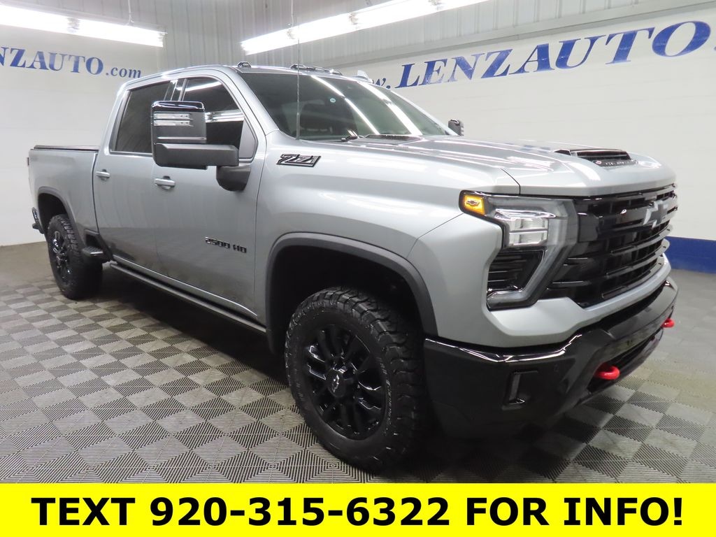 This 2025 Chevrolet Silverado 2500HD LTZ in Sterling Gray Metallic with 4x4 has 20,618 miles and is available at Lenz Truck Center in Fond du Lac. Powered by a 6.6L Duramax V8 Turbodiesel engine paired with a 10-speed automatic transmission, this Silverado 2500HD LTZ delivers impressive diesel torque, confident towing capability, and refined heavy-duty performance.
