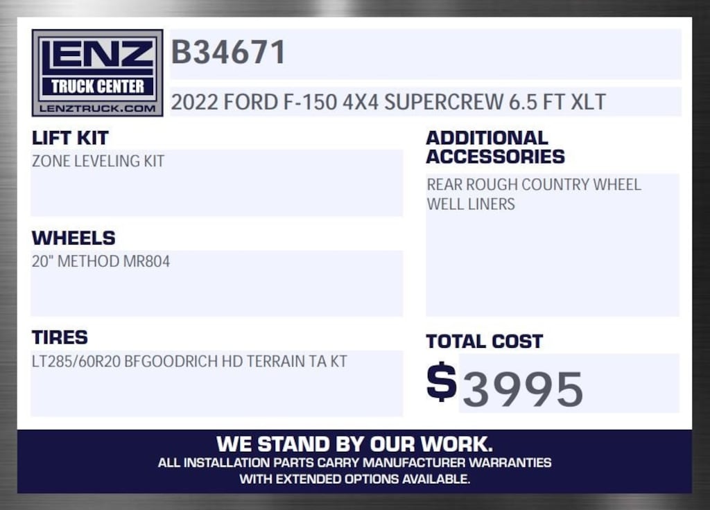 All of our vehicles are Lenz Certified by passing a rigorous safety inspection by our certified technicians. Each vehicle is prepped cosmetically and mechanically and ready to be delivered! We can ship your truck anywhere in the United States. Contact us to find out why Lenz Truck Center is selling a lot of trucks in a very different way. EXPECT TO BE IMPRESSED! We attempt to ensure every effort is made to assure the accuracy of these ads, however, errors may occur. We will do our best to keep all information current and accurate; however the dealership should be contacted for final pricing and availability. Every feature listed on the Factory window sticker may not be available. All prices are plus any applicable state taxes and service fees.