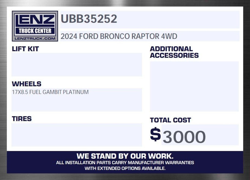 All of our vehicles are Lenz Certified by passing a rigorous safety inspection by our certified technicians. Each vehicle is prepped cosmetically and mechanically and ready to be delivered! We can ship your truck anywhere in the United States. Contact us to find out why Lenz Truck Center is selling a lot of trucks in a very different way. EXPECT TO BE IMPRESSED! We attempt to ensure every effort is made to assure the accuracy of these ads, however, errors may occur. We will do our best to keep all information current and accurate; however the dealership should be contacted for final pricing and availability. Every feature listed on the Factory window sticker may not be available. All prices are plus any applicable state taxes and service fees.