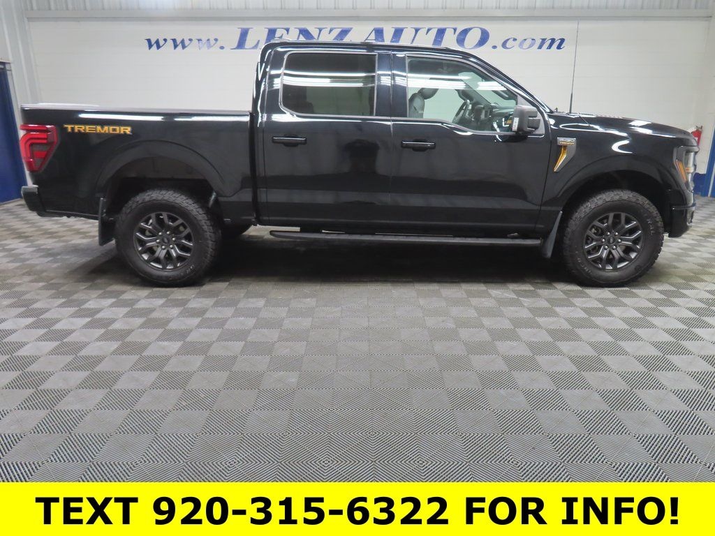 This 2024 Ford F-150 Tremor is finished in Agate Black Metallic and equipped with a 4x4 drivetrain. With 16,866 miles, this SuperCrew pickup is available from Lenz Truck Center in Fond du Lac and is powered by a 3.5L EcoBoost V6 paired with a 10-speed automatic transmission, delivering a strong combination of performance, capability, and advanced technology.