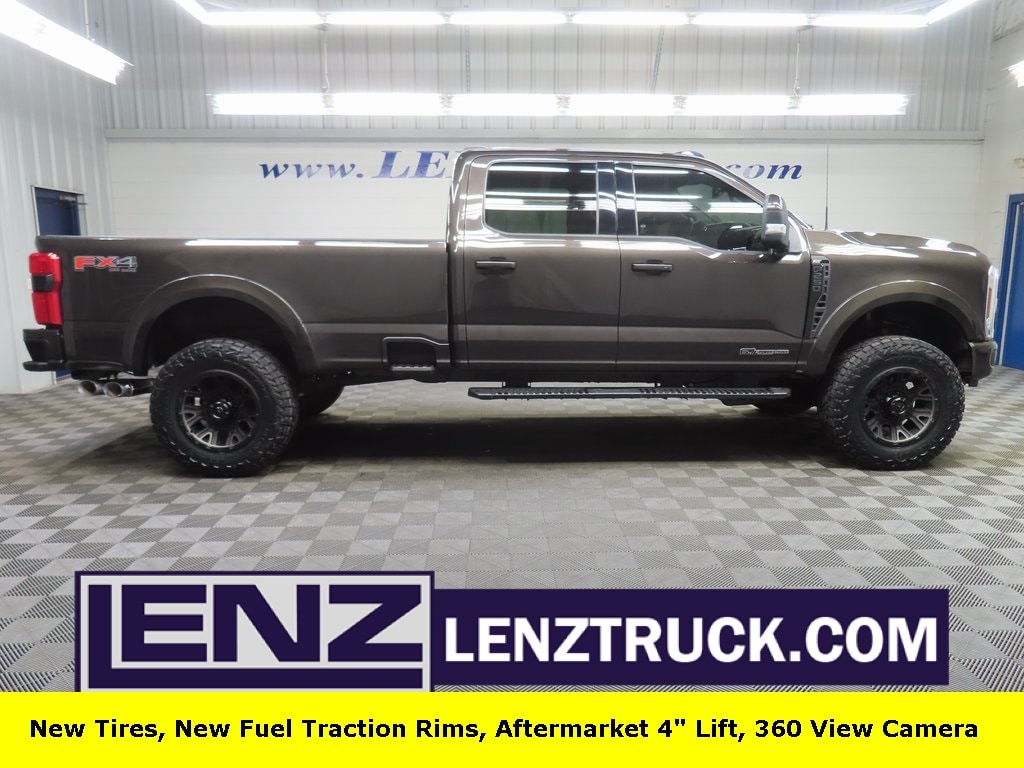 6.7L POWER STROKE V8 TURBODIESEL, 8 FOOT BOX, 4X4, NAVIGATION SYSTEM, DRIVER SIDE POWER HEATED FRONT BUCKET CLOTH SEATS, ORDER CODE 603A--- FX4 OFF-ROAD PACKAGE--- 5TH WHEEL/GOOSENECK HITCH PREP PACKAGE--- SNOW PLOW/CAMPER PACKAGE--- SPORT APPEARANCE PACKAGE--- XLT PREMIUM PACKAGE--- 360-DEGREE CAMERA PACKAGE--- NEW NITTO RECON GRAPPLER 37X11.50R20LT TIRES, FENDER FLARES, NEW FUEL TRACTION WHEELS, ELECTRONIC-LOCKING WITH 3.31 AXLE RATIO, 360 DEGREE CAMERA, BLIND-SPOT MONITORS, TOUCHSCREEN CONTROLS, BACKUP CAMERA, KEYLESS ACCESS WITH PUSH BUTTON START, AUTOMATIC HEADLIGHTS, APPLE CARPLAY, ANDROID AUTO, VOICE RECOGNITION, BLUETOOTH HANDS-FREE, B&O AUDIO SYSTEM (BANG & OLUFSEN), STEERING WHEEL CONTROLS, SPRAY IN BED LINER, REAR DEFROST, POWERSCOPE MIRRORS WITH BLIS (BLIND SPOT INFORMATION SYSTEM), INTEGRATED BRAKE CONTROLLER, AUTOMATIC HIGH BEAM HEADLIGHTS, SINGLE ZONE CLIMATE CONTROL, 360-DEGREE CAMERA SYSTEM, BLACK TOW HOOKS, BLIS WITH CROSS-TRAFFIC ALERT, BODY-COLOR DOOR HANDLES, BODY-COLOR FRONT & REAR BUMPERS, CHROME EXHAUST TIP, DARK PAINTED GRILLE, DELAY-OFF HEADLIGHTS, FRONT FOG LIGHTS, FULLY AUTOMATIC HEADLIGHTS, LED BOX LIGHTING, LED CENTER HIGH-MOUNTED STOP LAMP (CHMSL) CAMERA, LED FOG LAMPS, OFF-ROAD SPECIFICALLY TUNED SHOCK ABSORBERS, PANIC ALARM, PLATFORM RUNNING BOARDS, POWERSCOPE TRAILER TOW MIRRORS WITH HEAT, RADIO: B&O SOUND SYSTEM BY BANG & OLUFSEN, REAR PARKING SENSORS, REAR STABILIZER BAR & AUXILIARY SPRINGS, REMOTE START SYSTEM, REMOTE TAILGATE RELEASE, SYNC 4 WITH ENHANCED VOICE RECOGNITION, UNIQUE FX4 OFF-ROAD BOX DECAL, VARIABLY INTERMITTENT WIPERS, 10-SPEED AUTOMATIC TRANSMISSION, 60 MONTH OR 60,000 MILE FACTORY POWERTRAIN WARRANTY!!