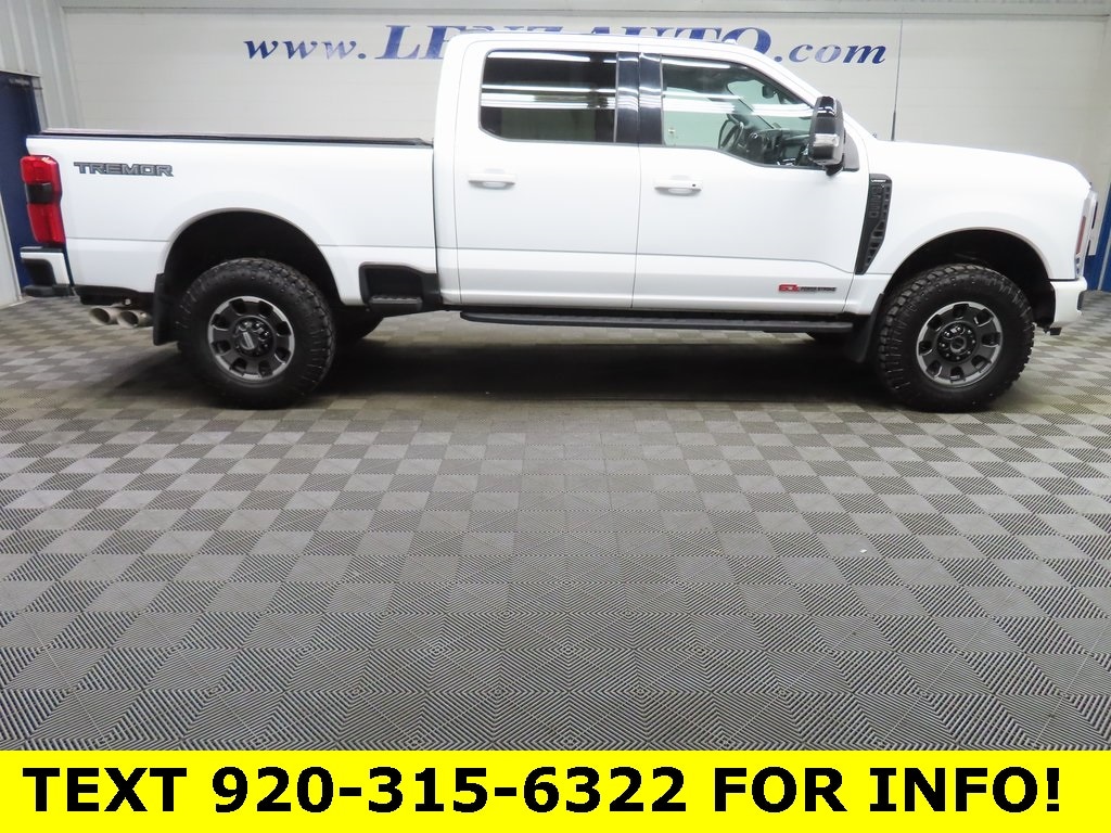 6.7L HIGH OUTPUT POWER STROKE V8 DIESEL, 6.75 FOOT BOX, 4X4, NAVIGATION SYSTEM, DUAL POWER HEATED AND COOLED FRONT BUCKET LEATHER SEATS, ORDER CODE 608A--- BLACK APPEARANCE PACKAGE--- TREMOR OFF-ROAD PACKAGE--- LARIAT ULTIMATE PACKAGE--- 5TH WHEEL/GOOSENECK HITCH PREP PACKAGE--- HIGH CAPACITY 11.6" AXLE UPGRADE PACKAGE--- 360 DEGREE CAMERA, ADAPTIVE CRUISE CONTROL, TOUCHSCREEN CONTROLS, HEADS-UP DISPLAY, BACKUP CAMERA, KEYLESS ACCESS WITH PUSH BUTTON START, APPLE CARPLAY, ANDROID AUTO, VOICE RECOGNITION, BLUETOOTH HANDS-FREE, STEERING WHEEL CONTROLS, REAR DEFROST, PRO TRAILER, POWERSCOPE MIRRORS WITH BLIS (BLIND SPOT INFORMATION SYSTEM), POWER SLIDING REAR WINDOW, INTEGRATED BRAKE CONTROLLER, HEATED STEERING WHEEL, HEATED SECOND ROW SEATS, FACTORY REMOTE START, DUAL CLIMATE, AUTO HIGH-BEAM HEADLIGHTS, BODY COLOR FRONT & REAR BUMPERS, DELAY-OFF HEADLIGHTS, EBONY BLACK PAINTED FRONT GRILLE BARS, EBONY BLACK PAINTED MIRROR CAPS, FRONT FOG LIGHTS, FRONT SENSING SYSTEM, FULLY AUTOMATIC HEADLIGHTS, LANE DEPARTURE WARNING SYSTEM, POWER STEERING, POWER WINDOWS, RADIO: B&O UNLEASHED SOUND SYSTEM BY BANG & OLUFSEN, RAIN SENSING WIPERS, REAR WHEEL WELL LINERS (PRE-INSTALLED), SYNC 4 WITH ENHANCED VOICE RECOGNITION, TAILGATE STEP & HANDLE, TEXTURED MATTE FINISH OFF-ROAD RUNNING BOARDS, TREMOR OFF-ROAD DECAL, UPFITTER SWITCHES (6), WIRELESS CHARGING PAD, 10-SPEED AUTOMATIC TRANSMISSION, GOODYEAR WRANGLER TRAILRUNNER AT LT285/75R18 TIRES, 18" BRIGHT MACHINED & CARBONIZED GRAY ALUMINUM WHEELS, 11,000 LBS GVWR RATING, 3,012 LBS MAX PAYLOAD, 18,200 LBS MAX TRAILERING CAPACITY, ELECTRONIC-LOCKING WITH 3.55 AXLE RATIO, 36 MONTH YEAR OR 36,000 MILE FACTORY BUMPER TO BUMPER WARRANTY, 60 MONTH OR 60,000 MILE FACTORY POWERTRAIN WARRANTY!!