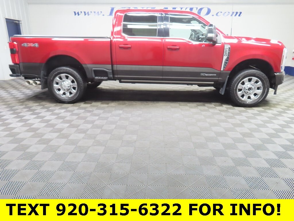 This 2024 Ford F-250 Super Duty King Ranch is finished in Rapid Red Metallic Tinted Clearcoat and equipped with a 4x4 drivetrain. With 21,943 miles, this heavy-duty pickup is available from Lenz Truck Center in Fond du Lac and is powered by a 6.7L Power Stroke V8 turbodiesel paired with a 10-speed automatic transmission, delivering confident towing capability and long-haul performance.