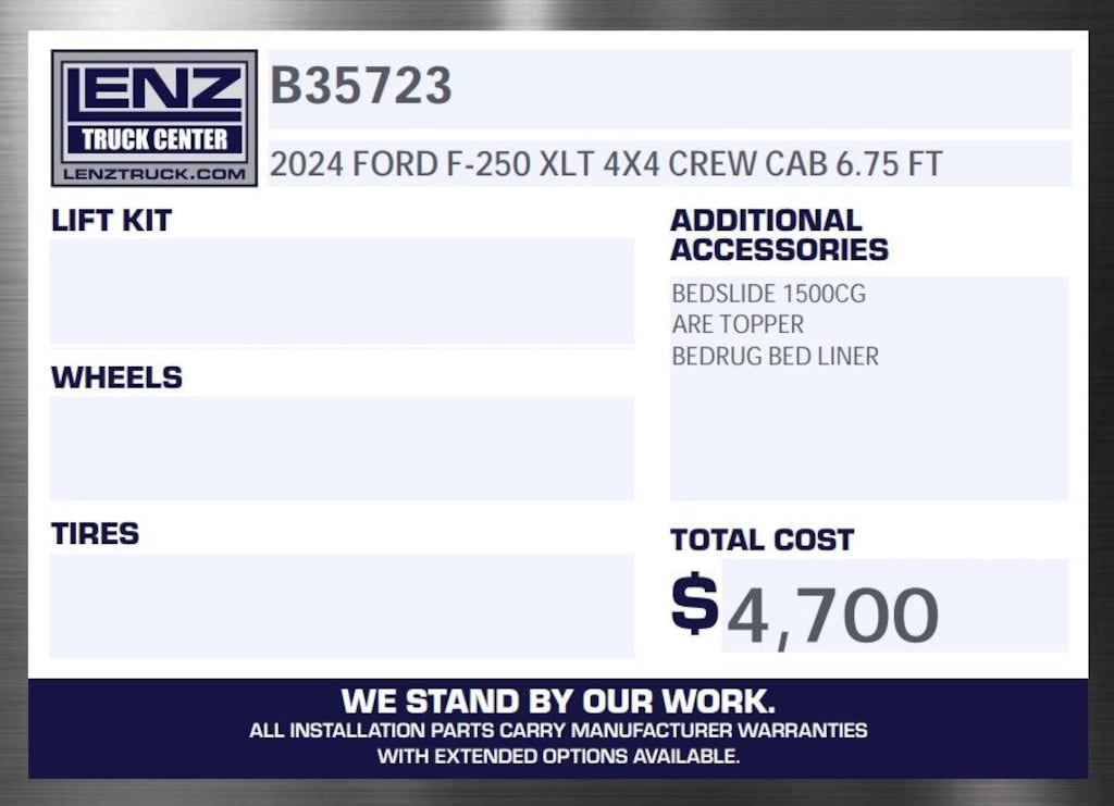 All of our vehicles are Lenz Certified by passing a rigorous safety inspection by our certified technicians. Each vehicle is prepped cosmetically and mechanically and ready to be delivered! We can ship your truck anywhere in the United States. Contact us to find out why Lenz Truck Center is selling a lot of trucks in a very different way. EXPECT TO BE IMPRESSED! We attempt to ensure every effort is made to assure the accuracy of these ads, however, errors may occur. We will do our best to keep all information current and accurate; however the dealership should be contacted for final pricing and availability. Every feature listed on the Factory window sticker may not be available. All prices are plus any applicable state taxes and service fees.