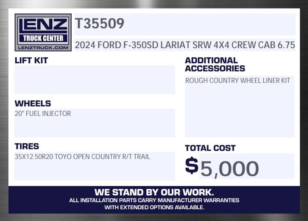 All of our vehicles are Lenz Certified by passing a rigorous safety inspection by our certified technicians. Each vehicle is prepped cosmetically and mechanically and ready to be delivered! We can ship your truck anywhere in the United States. Contact us to find out why Lenz Truck Center is selling a lot of trucks in a very different way. EXPECT TO BE IMPRESSED! We attempt to ensure every effort is made to assure the accuracy of these ads, however, errors may occur. We will do our best to keep all information current and accurate; however the dealership should be contacted for final pricing and availability. Every feature listed on the Factory window sticker may not be available. All prices are plus any applicable state taxes and service fees.