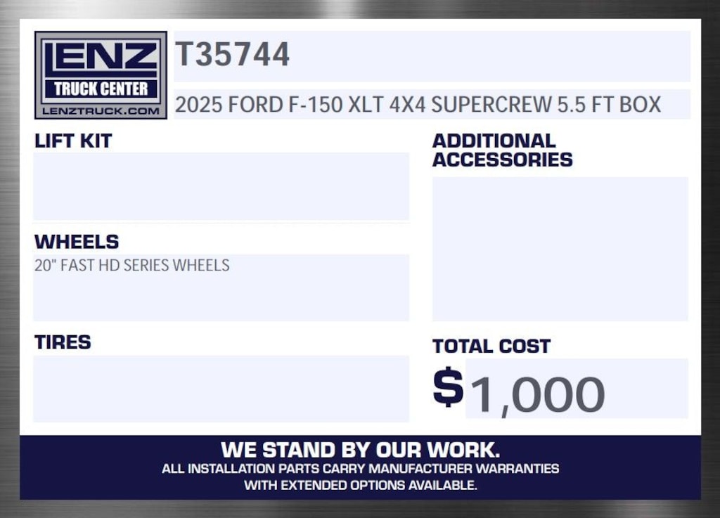 All of our vehicles are Lenz Certified by passing a rigorous safety inspection by our certified technicians. Each vehicle is prepped cosmetically and mechanically and ready to be delivered! We can ship your truck anywhere in the United States. Contact us to find out why Lenz Truck Center is selling a lot of trucks in a very different way. EXPECT TO BE IMPRESSED! We attempt to ensure every effort is made to assure the accuracy of these ads, however, errors may occur. We will do our best to keep all information current and accurate; however the dealership should be contacted for final pricing and availability. Every feature listed on the Factory window sticker may not be available. All prices are plus any applicable state taxes and service fees.
