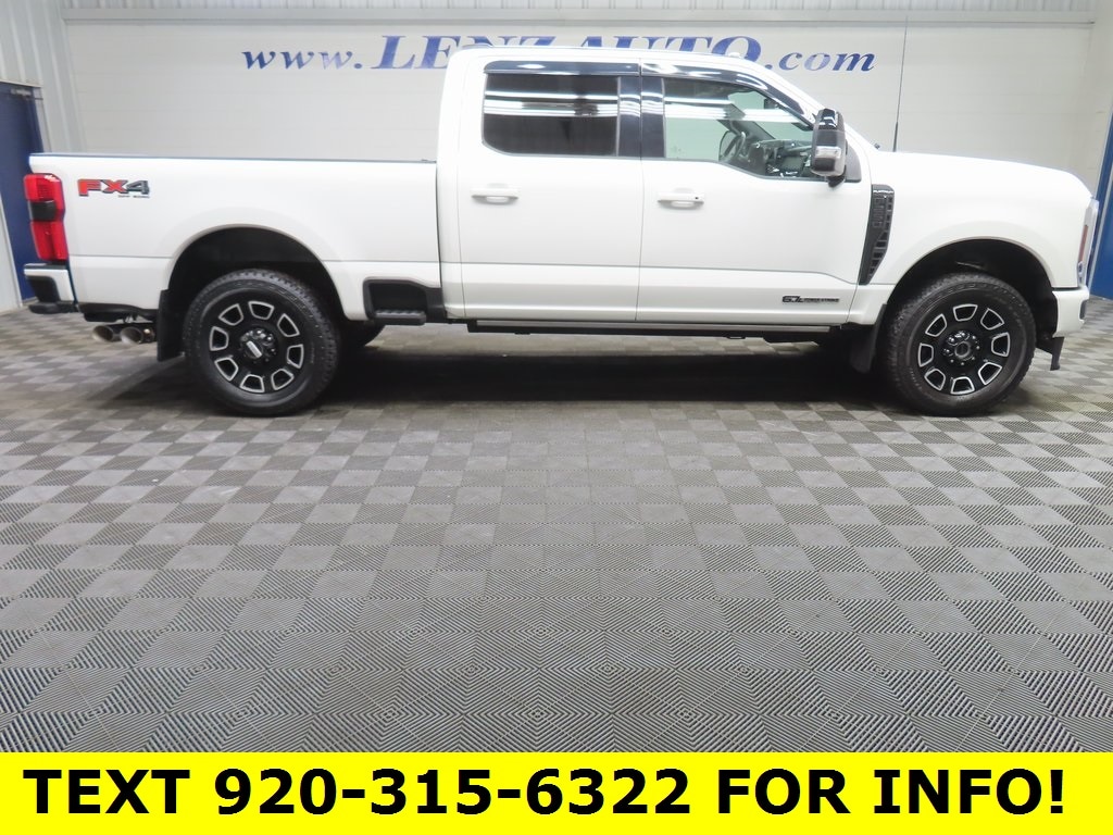 This 2025 Ford F-250SD Platinum is finished in Star White Metallic Tri-Coat and equipped with four-wheel drive. With 19,949 miles, this Super Duty pickup is powered by a 6.7L Power Stroke V8 turbodiesel engine paired with a 10-speed automatic transmission and is available at Lenz Truck Center in Fond du Lac.