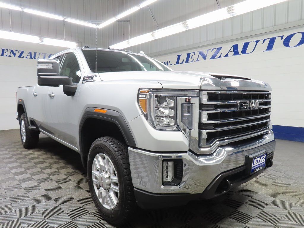 This 2022 GMC Sierra 2500HD SLT is finished in Quicksilver Metallic and equipped with 4x4 capability. It is powered by a 6.6L V8 engine paired with a 6-speed automatic transmission. This heavy-duty pickup is offered by Lenz Truck Center and is built to deliver dependable performance, towing capability, and refined comfort for demanding work and everyday use.