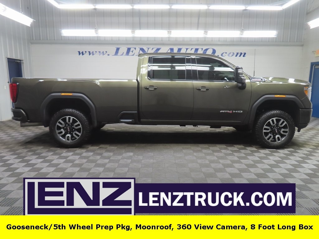 6.6L DURAMAX V8 TURBODIESEL, 8 FOOT BOX, 4X4, MOONROOF, DUAL POWER HEATED AND COOLED FRONT BUCKET LEATHER SEATS, PREFERRED EQUIPMENT GROUP 4SB--- AT4 PREFERRED PACKAGE--- AT4 PREMIUM PLUS PACKAGE--- TECHNOLOGY PACKAGE--- DRIVER ALERT PACKAGE I--- DRIVER ALERT PACKAGE II--- GOOSENECK/5TH WHEEL PACKAGE--- X31 OFF-ROAD PACKAGE--- 360 DEGREE CAMERA, FOLLOWING DISTANCE INDICATOR, FORWARD COLLISION ALERT, TOUCHSCREEN CONTROLS, BACKUP CAMERA, KEYLESS ACCESS WITH PUSH BUTTON START, APPLE CARPLAY, ANDROID AUTO, VOICE RECOGNITION, BLUETOOTH HANDS-FREE, STEERING WHEEL CONTROLS, SPRAY IN BED LINER, REAR DEFROST, REAR CAMERA MIRROR, POWERSCOPE MIRRORS WITH BLIS (BLIND SPOT INFORMATION SYSTEM), POWER SLIDING REAR WINDOW, INTEGRATED BRAKE CONTROLLER, HEATED STEERING WHEEL, HEATED SECOND ROW SEATS, FACTORY REMOTE START, DUAL CLIMATE, CORNERSTEP FOOTWELLS IN THE REAR BUMPER, 2-SPEED ACTIVE TRANSFER CASE, BED VIEW CAMERA WITH 2 TRAILER CAMERA PROVISIONS, BOSE PREMIUM 7 SPEAKER SOUND SYSTEM, DELAY-OFF HEADLIGHTS, FRONT FOG LIGHTS, FRONT PREM FLOOR LINERS W/REMOVABLE CARPET INSERT, FULLY AUTOMATIC HEADLIGHTS, HD SURROUND VISION WITH 2 TRAILER VIEW CAMERA PROVISIONS, HILL DESCENT CONTROL, LANE DEPARTURE WARNING SYSTEM, MANUAL TILT-WHEEL/TELESCOPING STEERING COLUMN, OFF-ROAD SUSPENSION, POWER STEERING, POWER WINDOWS, REAR CROSS TRAFFIC ALERT, REAR PREM FLOOR LINERS W/REMOVABLE CARPET INSERT, SAFETY ALERT SEAT, ULTRASONIC FRONT & REAR PARK ASSIST, VARIABLY INTERMITTENT WIPERS, WIRELESS CHARGING, WIRELESS PHONE PROJECTION, 10-SPEED AUTOMATIC TRANSMISSION, GOODYEAR WRANGLER TRAILRUNNER AT LT275/65R20 TIRES, 20" MACHINED ALUMINUM WHEELS, 3.42 AXLE RATIO, 60 MONTH OR 60,000 MILE FACTORY POWERTRAIN WARRANTY!!