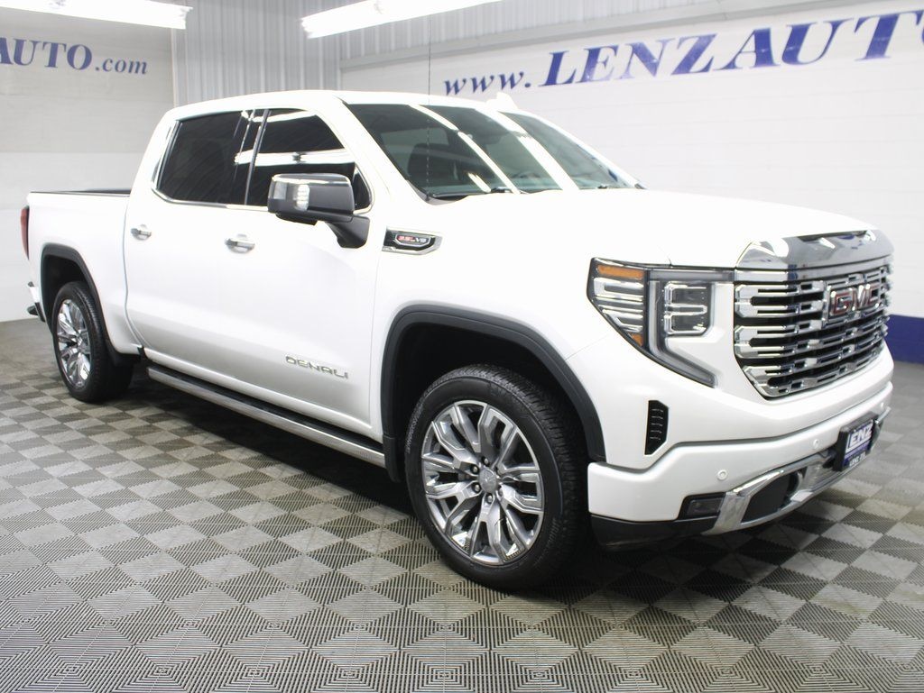 COME DOWN AND TAKE B34207 FOR A TEST DRIVE TODAY 2024 WHITE FROST TRICOAT SIERRA 1500 GMC DENALI 4X4 CREW CAB 5.8 FT SHORT BOX 6.2L V8 ECOTEC3!! CLEAN CARFAX!!
