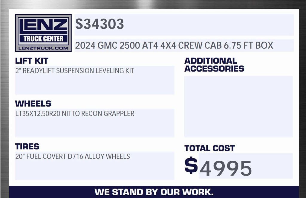 COME DOWN AND TAKE S34303 FOR A TEST DRIVE TODAY 2024 SUMMIT WHITE SIERRA 2500HD GMC AT4 4X4 CREW CAB 6.75 FT BOX 6.6L DURAMAX V8 TURBODIESEL!! CLEAN CARFAX!!