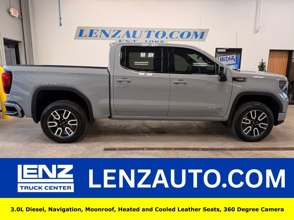 3.0L I6 DIESEL, 4X4, 5.8 FOOT BOX, NAVIGATION, MOONROOF, DUAL POWER HEATED AND COOLED FRONT BUCKET LEATHER SEATS, AT4 PREFERRED PACKAGE--- AT4 PREMIUM PACKAGE--- TRAILERING PACKAGE--- TECHNOLOGY PACKAGE--- FOLLOWING DISTANCE INDICATOR, FORWARD COLLISION ALERT, FACTORY REMOTE START, 360 DEGREE CAMERA, OFF-ROAD HIGH CLEARANCE STEP, OFF-ROAD SUSPENSION, INTEGRATED BRAKE CONTROLLER, SPRAY IN BEDLINER, STEERING WHEEL CONTROLS, DUAL CLIMATE, REAR DEFROST, HEATED SECOND ROW SEATS, HEATED STEERING WHEEL, POWER SLIDING REAR WINDOW, TOUCHSCREEN CONTROLS, HEADS-UP DISPLAY, BACKUP CAMERA, KEYLESS ACCESS WITH PUSH BUTTON START, AUTOMATIC HEADLIGHTS, APPLE CARPLAY, ANDROID AUTO, VOICE RECOGNITION, BLUETOOTH HANDS-FREE, REAR CAMERA MIRROR, RAIN SENSING AUTOMATIC WIPERS, POWER FOLDING SIDE MIRRORS WITH BLIND SPOT MONITORING, AUTO HIGH-BEAM HEADLIGHTS, AUTOMATIC EMERGENCY BRAKING, BED VIEW CAMERA, DELAY-OFF HEADLIGHTS, FRONT FOG LIGHTS, FRONT PEDESTRIAN BRAKING, FRONT PREM FLOOR LINERS WITH REMOVABLE CARPET INSERT, FULLY AUTOMATIC HEADLIGHTS, HITCH GUIDANCE, HITCH VIEW, IN-VEHICLE TRAILERING SYSTEM APP, PANIC ALARM, PERIMETER LIGHTING, POWER STEERING, POWER WINDOWS, RAIN SENSING WIPERS, REAR CROSS TRAFFIC BRAKING, REAR PEDESTRIAN DETECTION, REAR PREM FLOOR LINERS WITH REMOVABLE CARPET INSERT, RED RECOVERY HOOKS, SAFETY ALERT SEAT, SECURITY SYSTEM, ULTRASONIC FRONT & REAR PARK ASSIST, UNIVERSAL HOME REMOTE, WIRELESS CHARGING, 10 SPEED AUTOMATIC TRANSMISSION, GOODYEAR WRANGLER TRAILRUNNER AT 275/60R20 TIRES, 20" X 9" MACHINED ALUMINUM WHEELS, 7,200 LBS GVWR RATING, 8,800 LBS MAX TRAILERING CAPACITY, 1,387 LBS MAX PAYLOAD, AUTO-LOCKING REAR DIFFERENTIAL,3.23 REAR AXLE RATIO, 3 YEAR OR 36,000 FACTORY BUMPER TO BUMPER WARRANTY, 5 YEAR OR 60,000 FACTORY POWERTRAIN WARRANTY!!