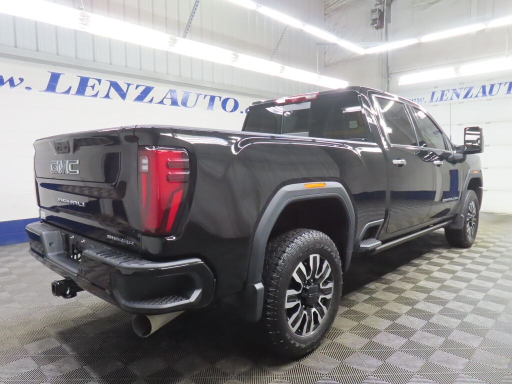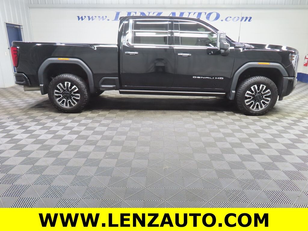 This 2025 GMC Sierra 2500HD Denali Ultimate is finished in Onyx Black and equipped with a 4x4 drivetrain. With 15,453 miles, this heavy-duty pickup is available from Lenz Truck Center in Fond du Lac and is powered by a 6.6L Duramax V8 turbodiesel paired with a 10-speed automatic transmission, delivering exceptional towing capability and refined performance.