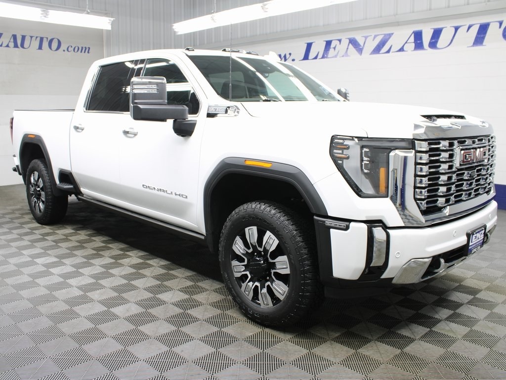 COME DOWN AND TAKE B34484 FOR A TEST DRIVE TODAY 2025 SUMMIT WHITE SIERRA 2500HD GMC DENALI 4X4 CREW CAB 6.75 FT BOX 6.6L V8 GAS!! CLEAN CARFAX!!