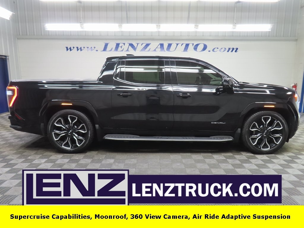 This 2025 GMC Sierra EV Denali in Onyx Black features 4x4 Crew Cab drivetrain and has 34,834 miles. Available now at Lenz Truck Center in Fond du Lac,