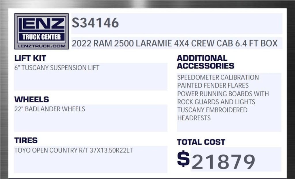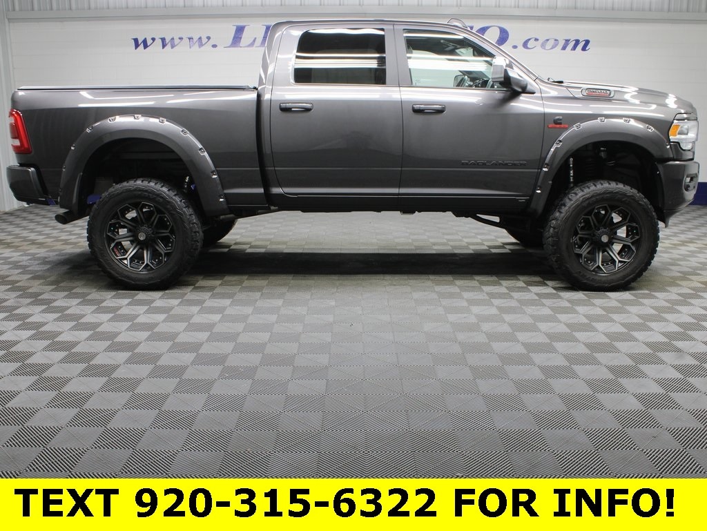 6.7L CUMMINS I6 TURBODIESEL, 6.4 FOOT BOX, 4X4, NAVIGATION SYSTEM, MOONROOF, DUAL POWER HEATED AND COOLED FRONT BUCKET LEATHER SEATS, SPORT APPEARANCE PACKAGE WITHOUT DECAL--- 5TH WHEEL/GOOSENECK TOWING PREP PACKAGE--- LARAMIE LEVEL B EQUIPMENT GROUP--- BADLANDER PACKAGE--- 22" BADLANDER WHEELS, 6" TUSCANY OFF-ROAD SUSPENSION LIFT KIT, COLOR MATCHED FENDER FLARES, BADLANDER LEATHER/SUEDE SEATING, SPEEDOMETER CALIBRATION, PAINTED FENDER FLARES, POWER RUNNING BOARS WITH ROCK GUARDS AND LIGHTS, FACTORY REMOTE START, TOUCHSCREEN CONTROLS, BACKUP CAMERA, KEYLESS ACCESS WITH PUSH BUTTON START, APPLE CARPLAY, ANDROID AUTO, VOICE RECOGNITION, BLUETOOTH HANDS-FREE, STEERING WHEEL CONTROLS, SPRAY IN BED LINER, REVERSE SENSORS, REAR DEFROST, POWER DEPLOYABLE RUNNING BOARDS, HEATED STEERING WHEEL, HEATED SECOND ROW SEATS, DUAL CLIMATE, ADJUSTABLE POWER PEDALS, ROUGH COUNTRY TONNEAU COVER, AUXILIARY SWITCHES, TUSCANY BADLANDER CONVERSION, HARMAN/KARDON PREMIUM SOUND SYSTEM, RAMCHARGER WIRELSS CHARGING PAD, UCONNECT 5 NAV 12" DISPLAY, 2ND ROW IN FLOOR STORAGE BINS, 6-SPEED AUTOMATIC TRANSMISSION, TOYO OPEN COUNTRY R/T 37X13.50R22LT TIRES, 3.73 REAR AXLE RATIO, FMVSS COMPLIANT 3 YEAR/36,000 MILE WARRANTY!!